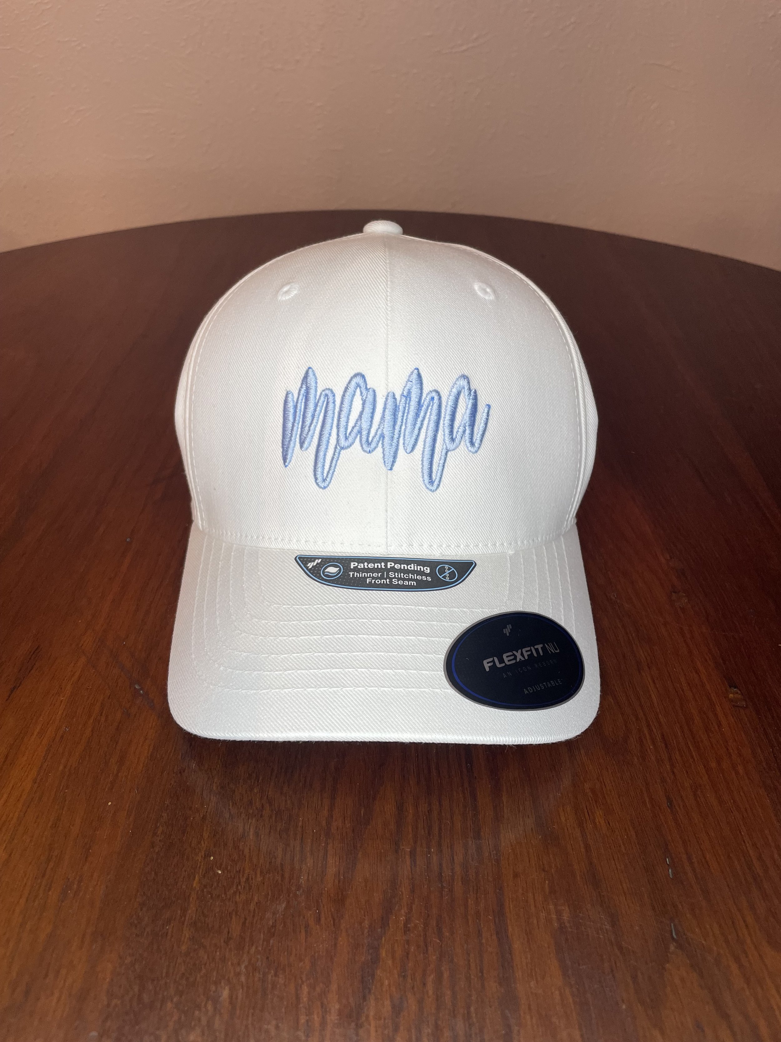 This Flexfit hat features a fun, 3-D puff embroidered "mama" in a playful cursive font. Perfect for running errands, cheering from the sidelines at sports games, or adding a touch of personality to your everyday look. Choose your hat color (white or black) and then pick your favorite thread color to create a custom piece you'll love. Comfortable, stylish, and a sweet way to add a personal touch to your casual outfits!